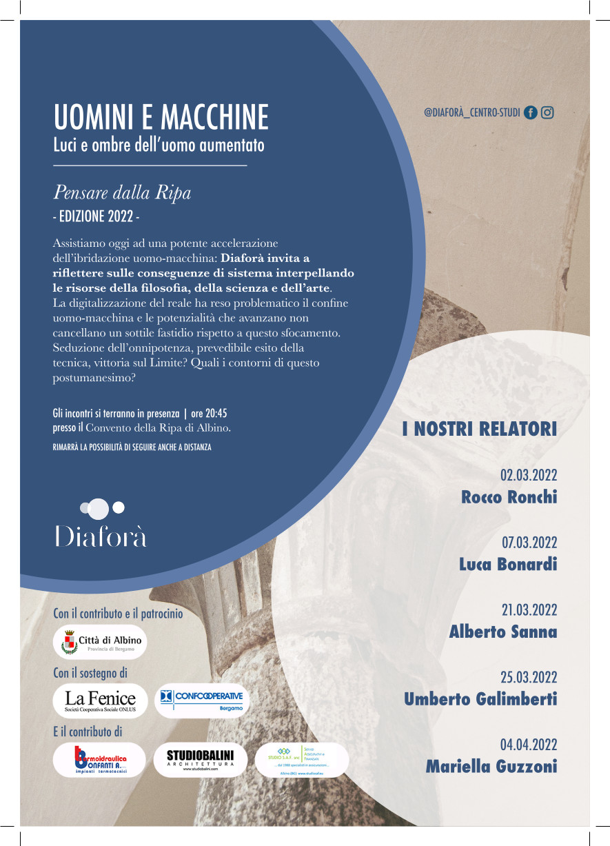 Pensare dalla Ripa 2024 "Sbalzi e scossoni" Cari tutti, Diaforà è [...]
