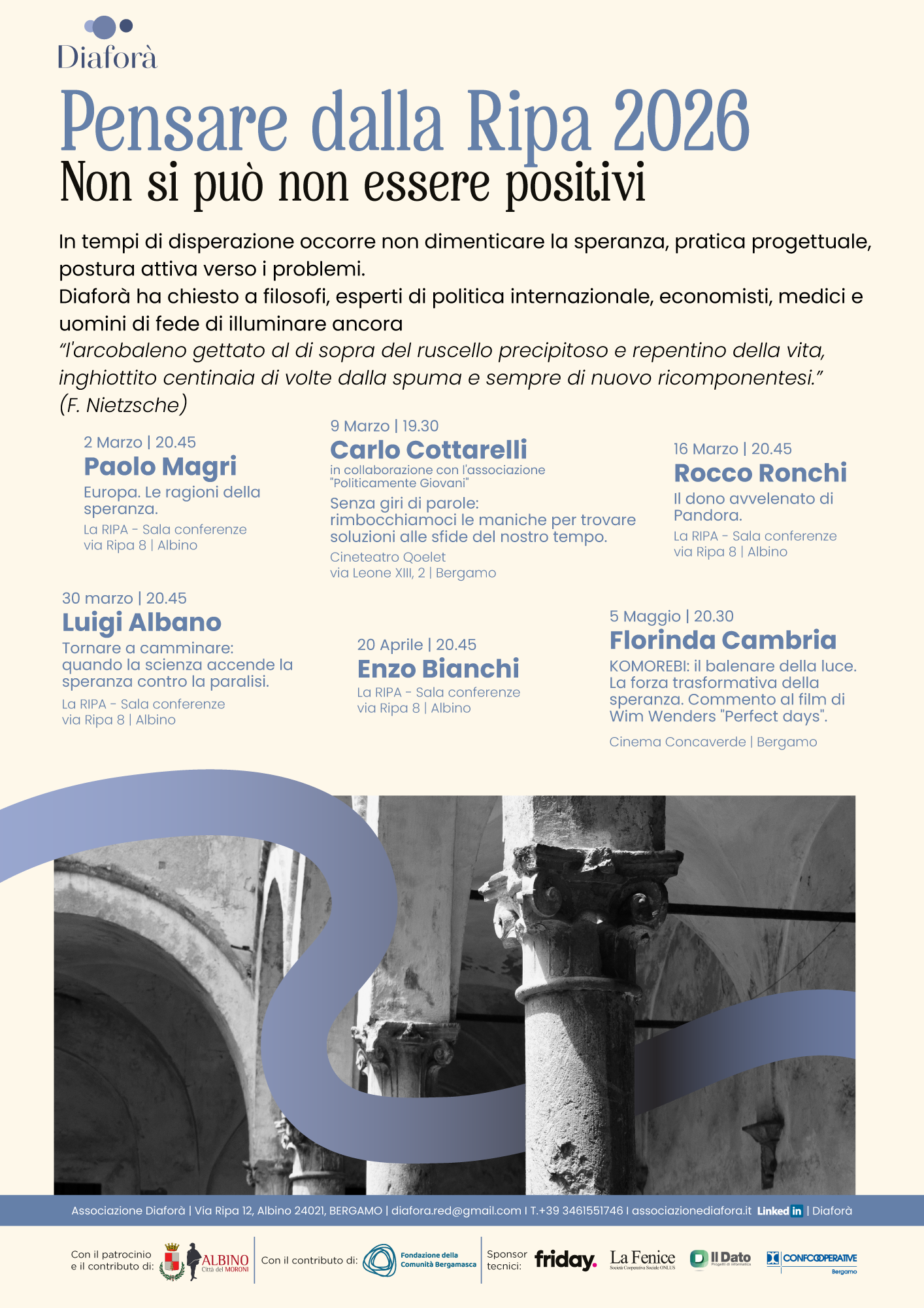 Vi aspettiamo ai nostri eventi. L’ingresso è a offerta libera, non è necessaria la prenotazione.